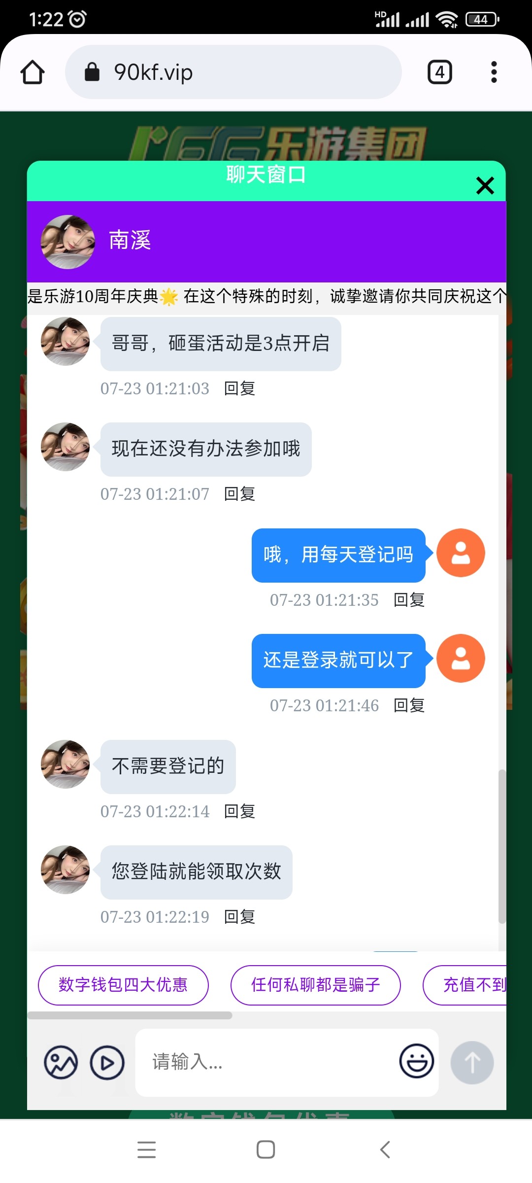 乐游这个系列的都是垃圾,可以说做活动前电子肯定是调整过了,年份彩金原来玩首存存100,8元都不送了,砸金蛋还是算了有那功夫搞点别的几块钱也到手了,这b台子的反水是真的低