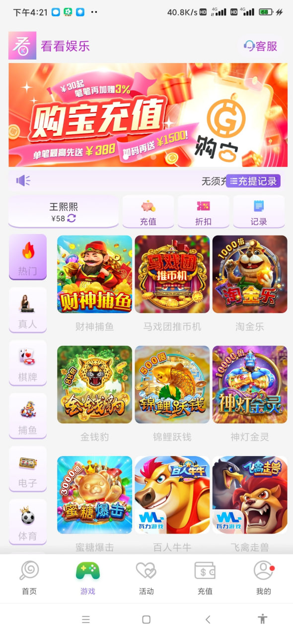 活动都会不定期更新,请您参考下当前最新优惠【充值任意金额送58彩金】