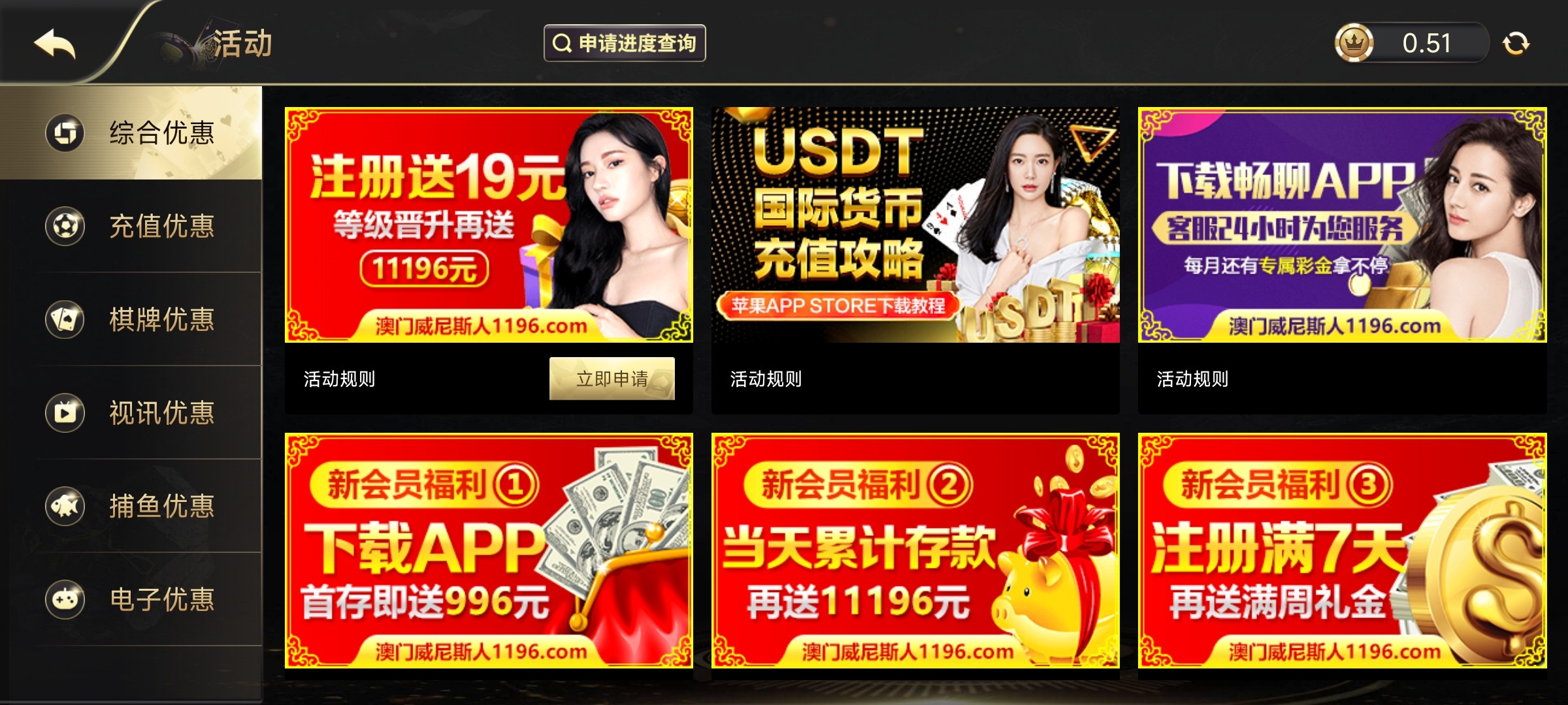 新用户下载APP注册自助申请送19/10倍流水提现。
