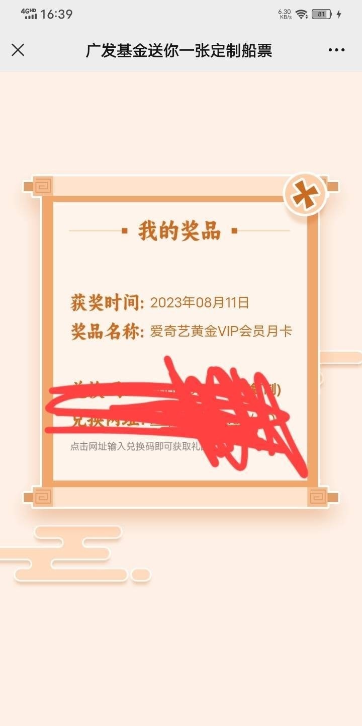 首发加精!微信广发基金公众号回复生日有礼。点击福利三,进去生成船票,随便填。有点水。爱奇艺月卡