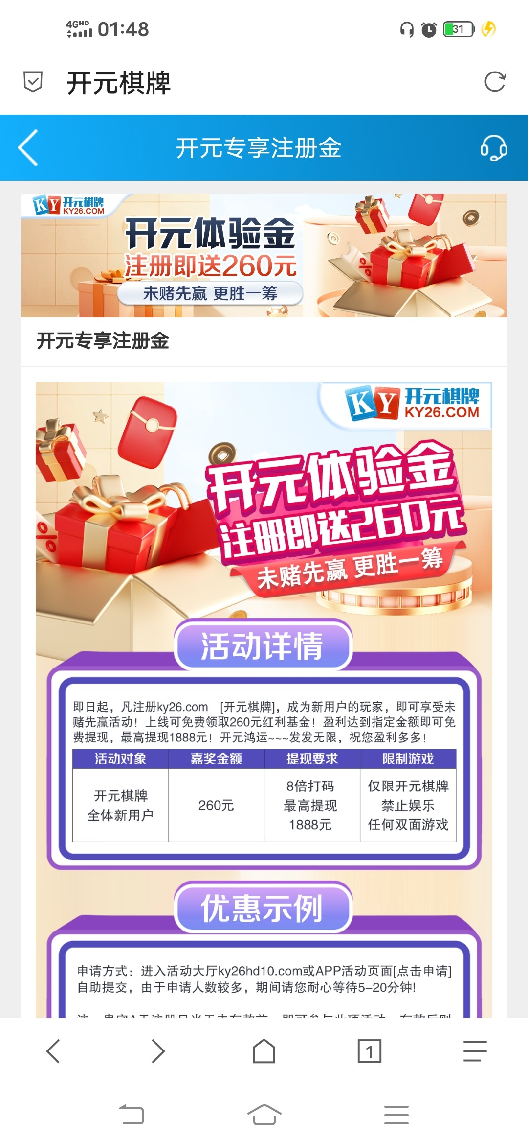 新人注册送260(只能玩棋牌)最低一千提