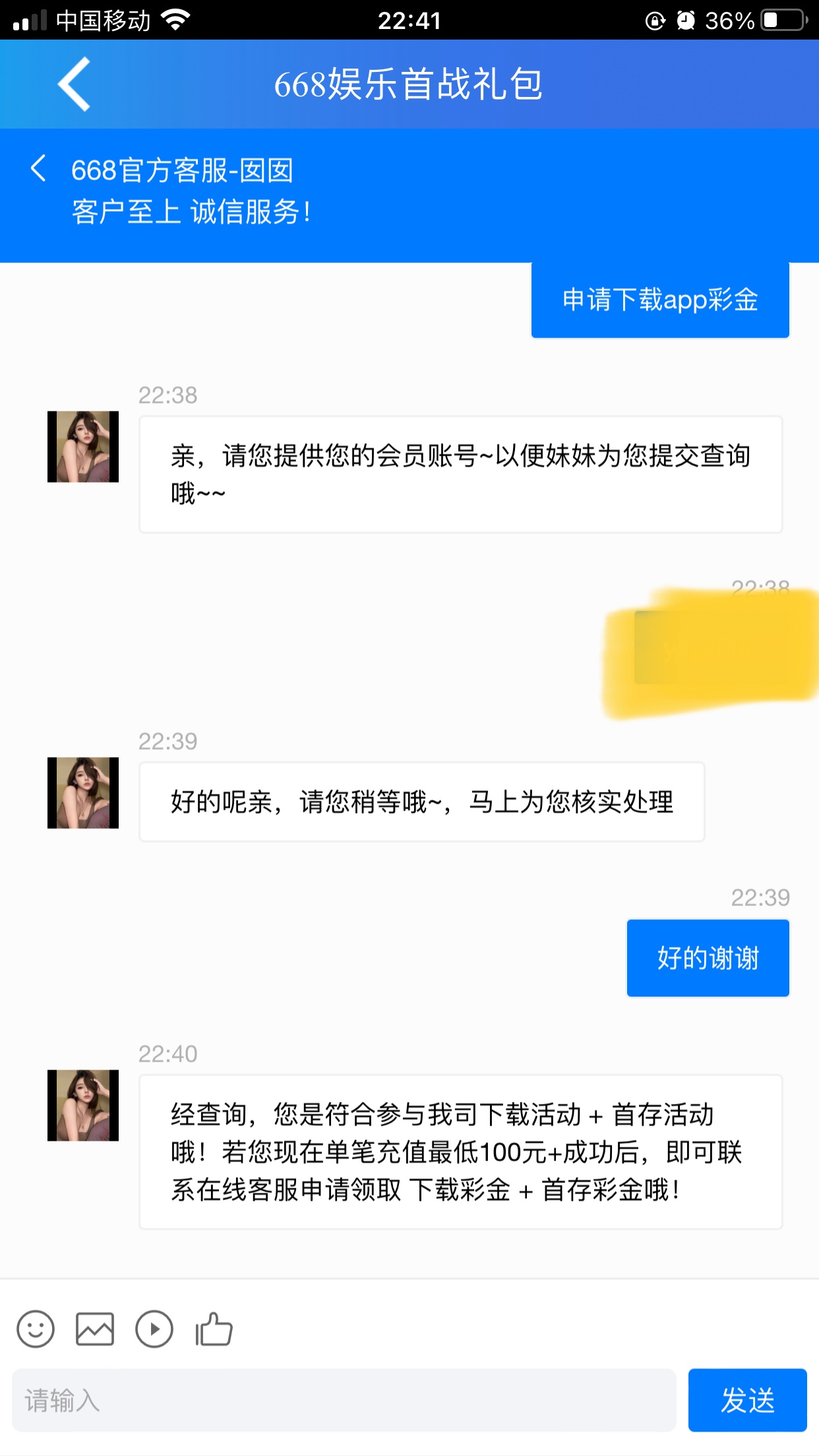 经查询,您是符合参与我司下载活动 + 首存活动哦!若您现在单笔充值最低100元+成功后,即可联系在线客服申请领取 下载彩金 + 首存彩金哦!