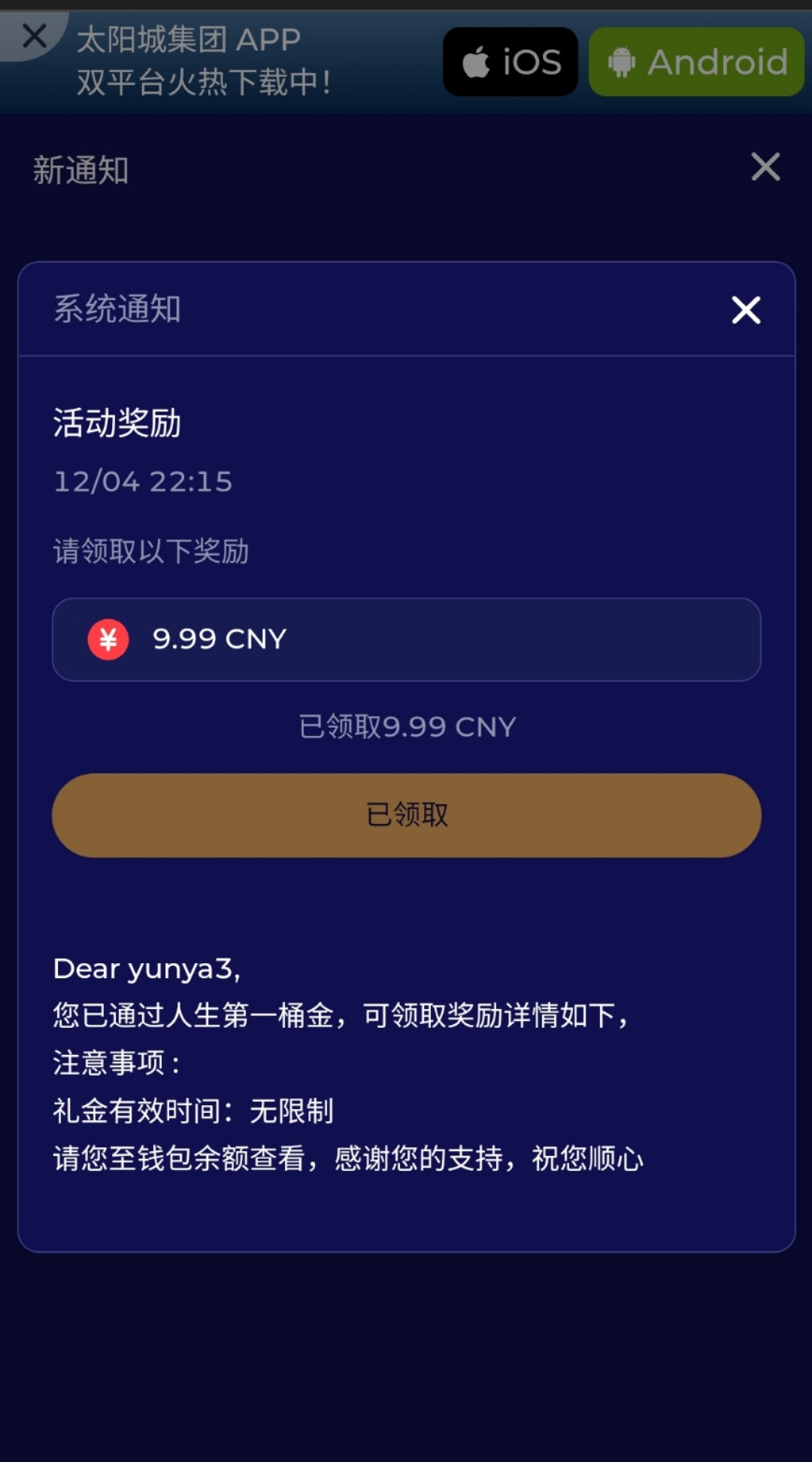 送了9.99  不能玩游戏,要充值,提现最低500起提,看样子是个黑台,避坑,大家不要充值!