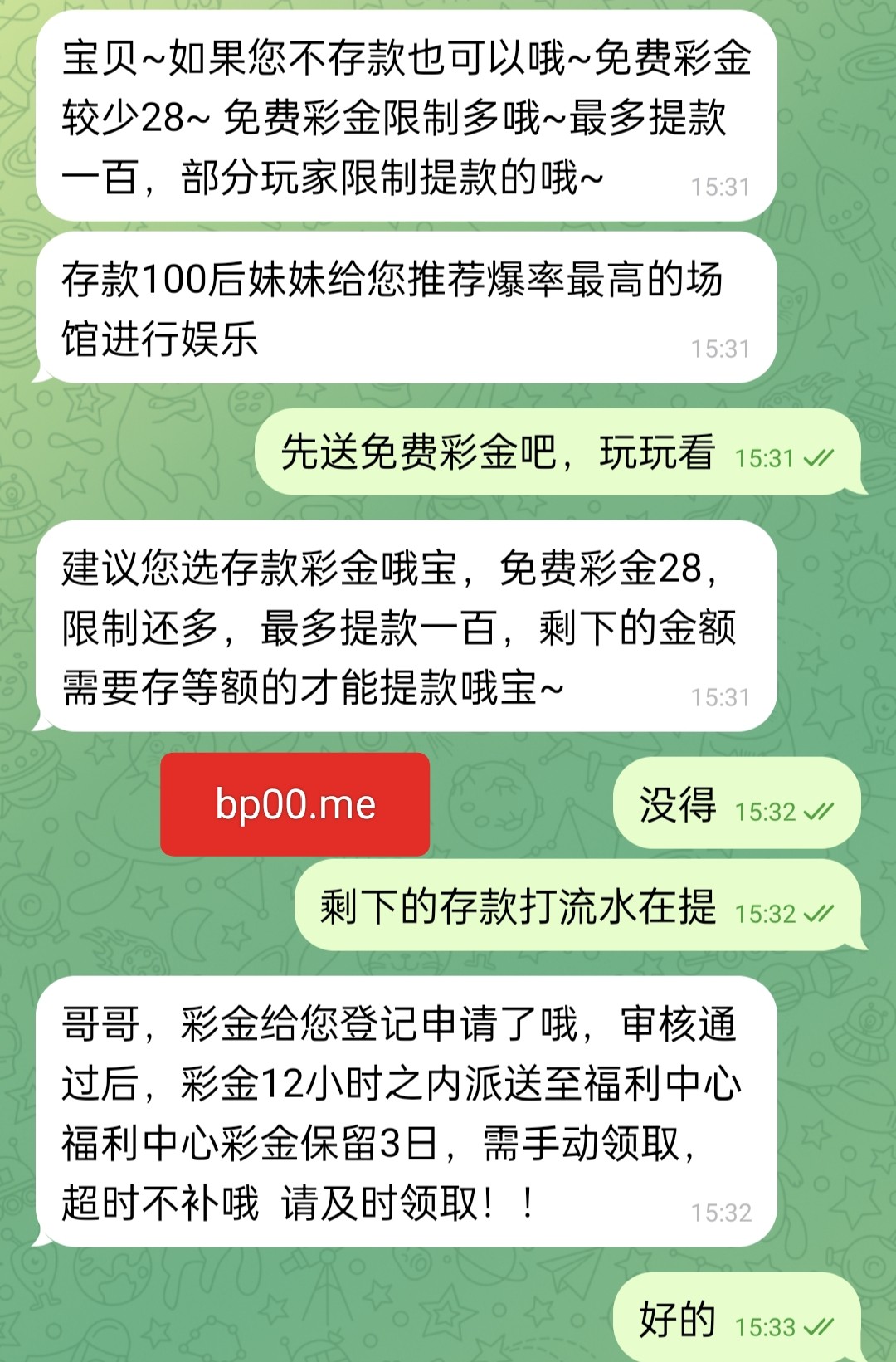 所有撸成功的老表,最后请向客服说明是在“黑黑社区bp00.me”看到的