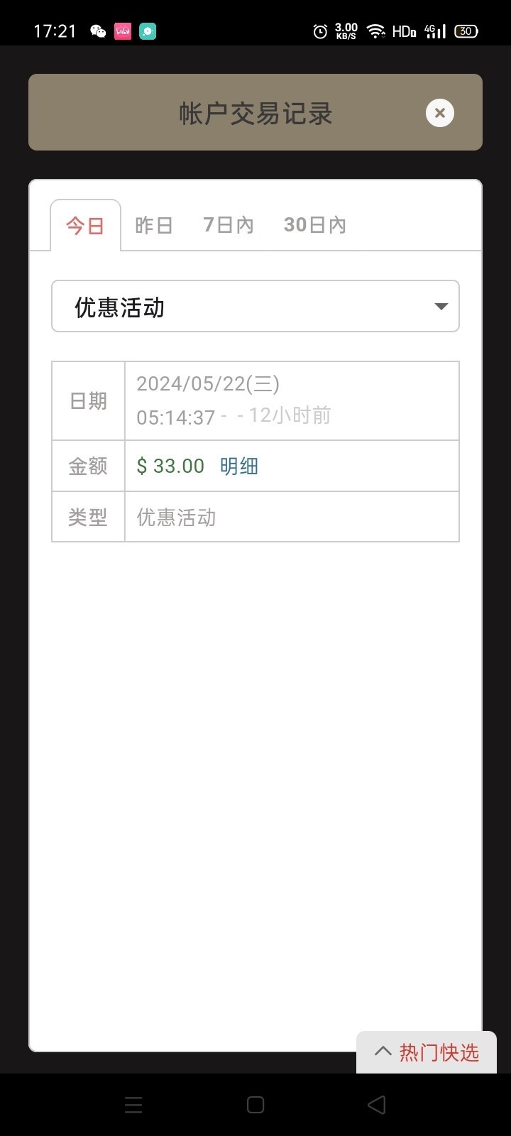 33提了330到账