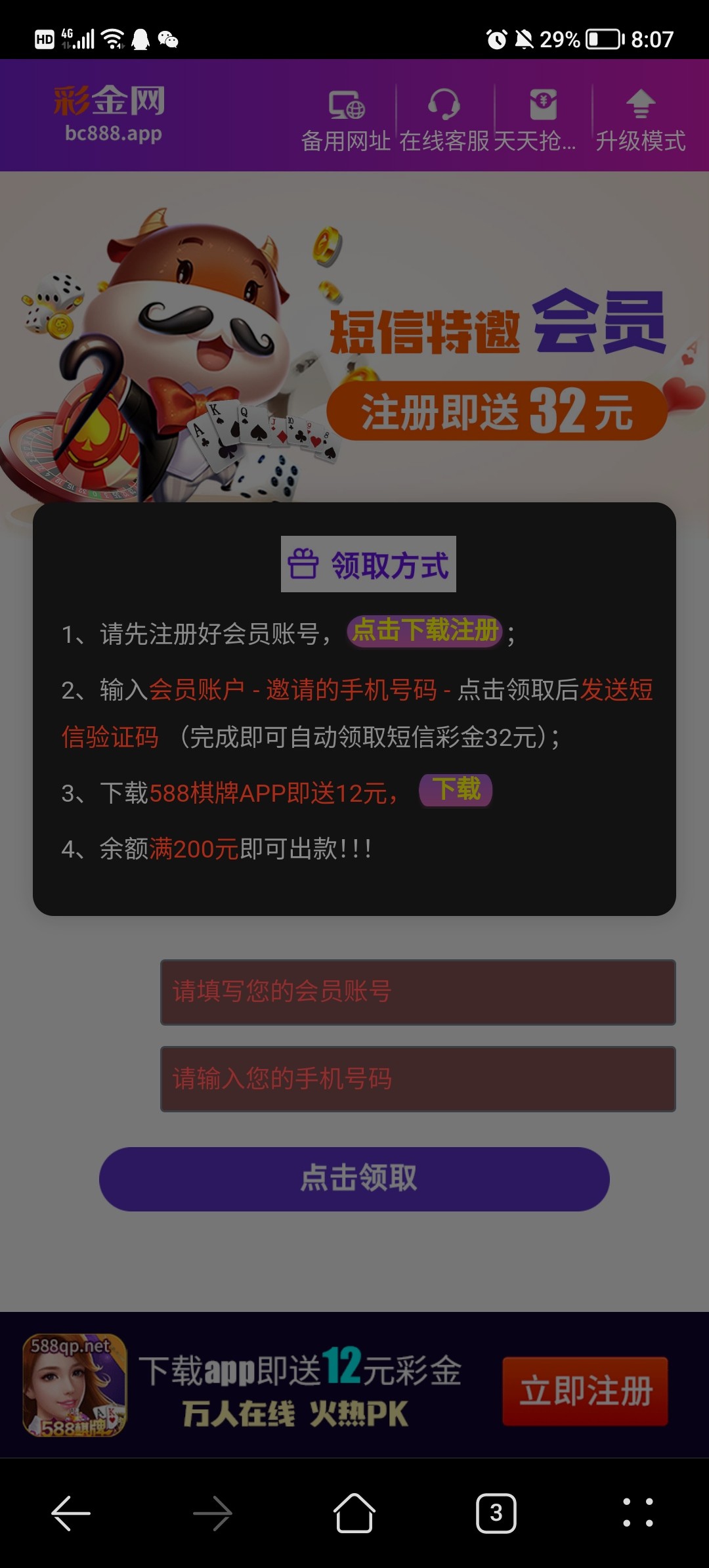 也可以下载app申请彩金,建议换IP去注册!