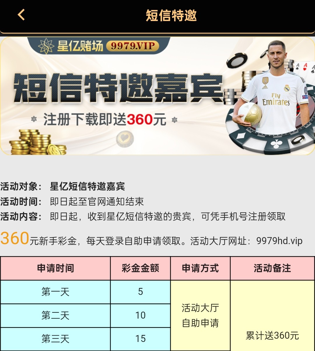 新用户注册绑卡 去申请网站自助申请特邀彩金 第一天5 第二天10 第三天15 游戏和提款限制自行查看优惠