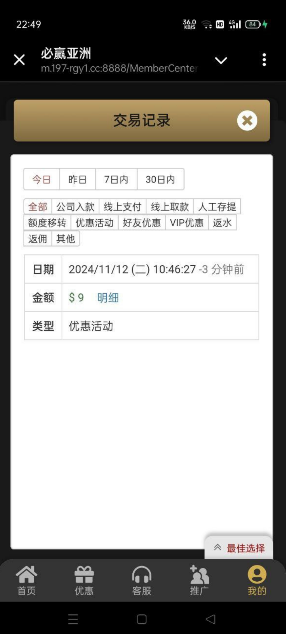 出款情况:自测(