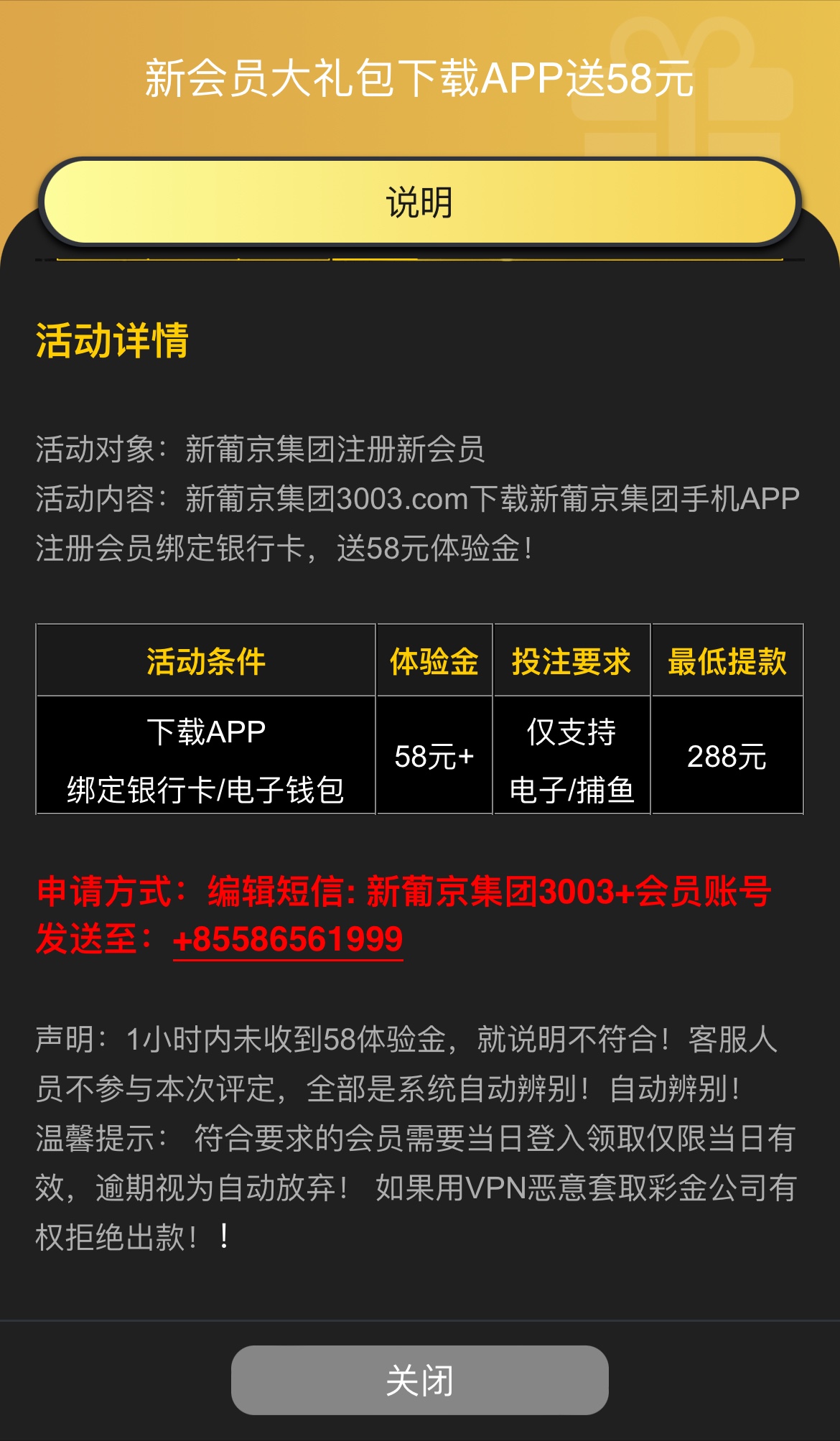 下载APP绑银行卡/电子钱包/发送短信,限电子/捕鱼,最低288提现,发了短信一个小时内没收到就是不符合