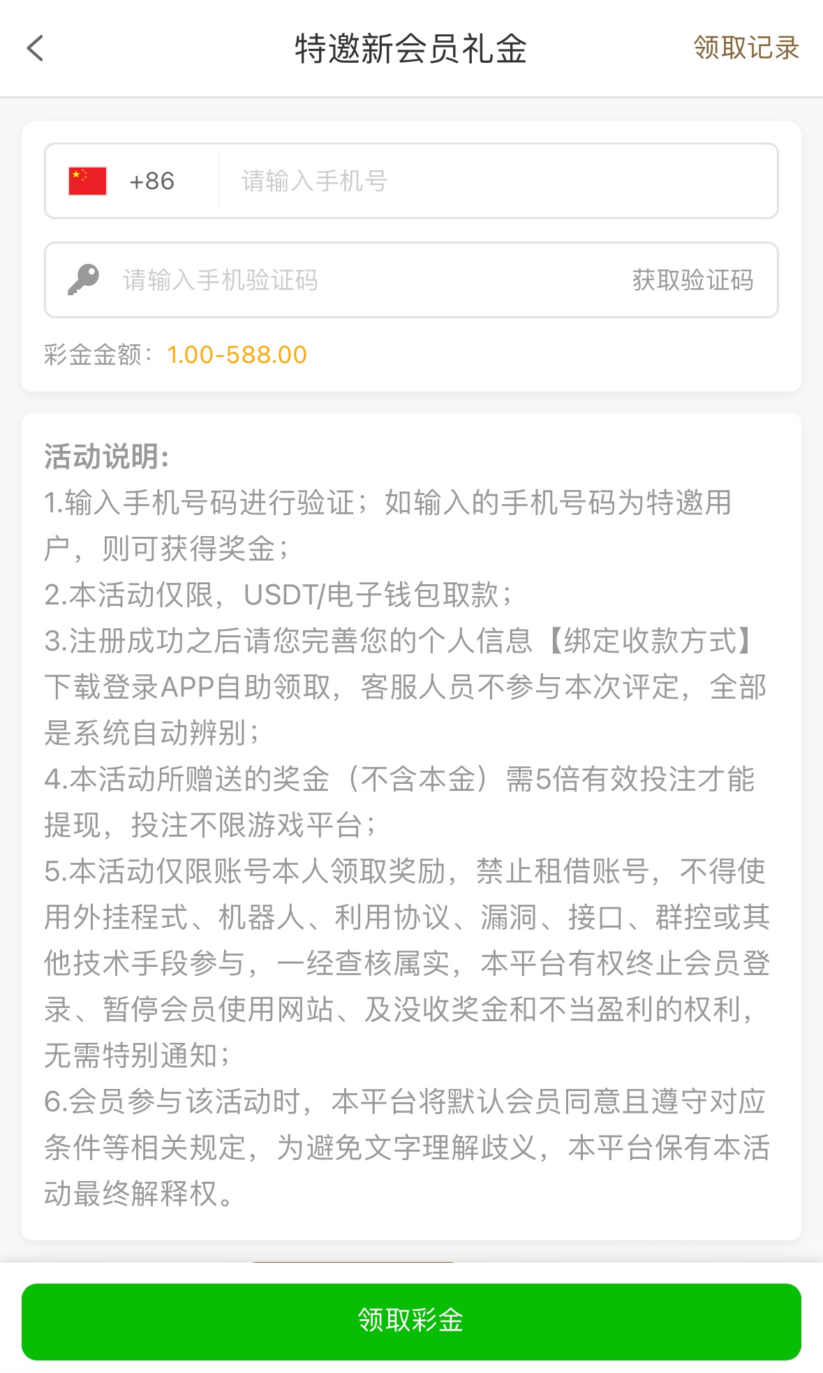 注册完善资料绑定收款方式下载APP优惠里自助领取,5倍流水,仅限USTD/电子钱包取款