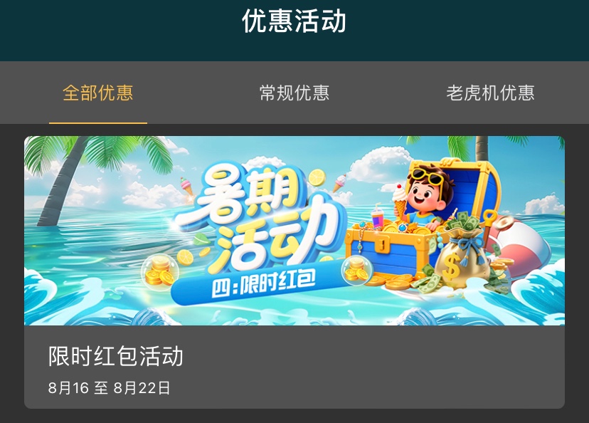 活动时间:8月16号-8月22号活动期间每天晚上7点-9点到优惠里面自助领取,不限制游戏,10倍流水
