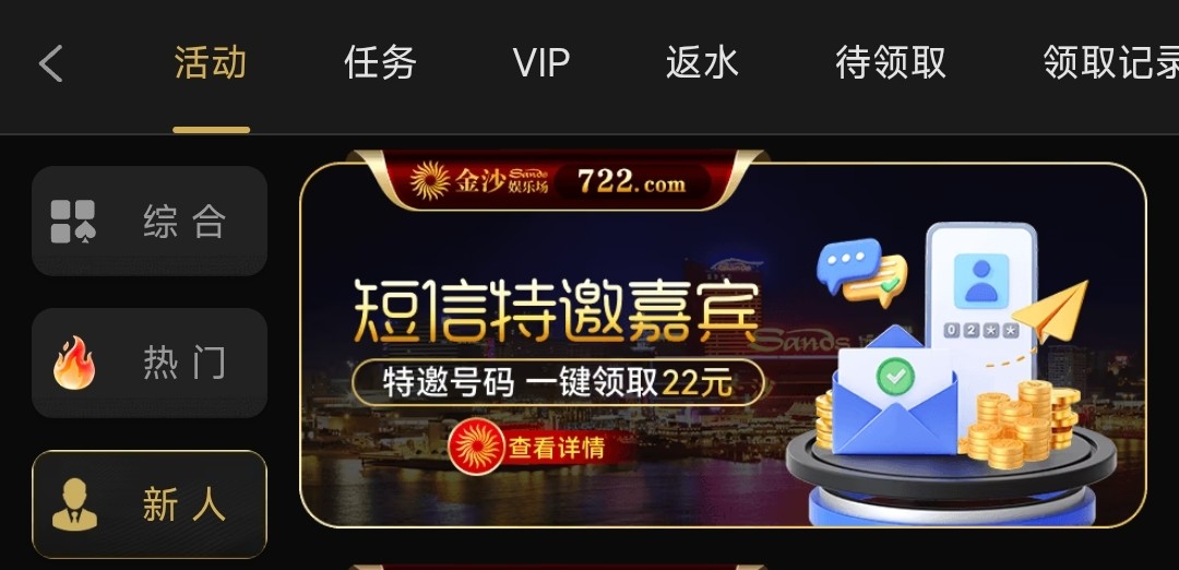 还没玩过可以注册到优惠里自助申请领取,有号并且之前领过可以换绑手机号在用原来特邀手机号重新注册这样也可以重新领取,彩金10倍流水,仅限电子/捕鱼/棋牌,高低提款仅限220