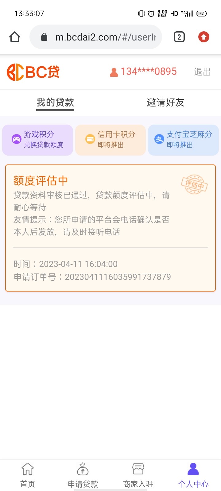 换了个号码申请又审核通过,在评估额度…