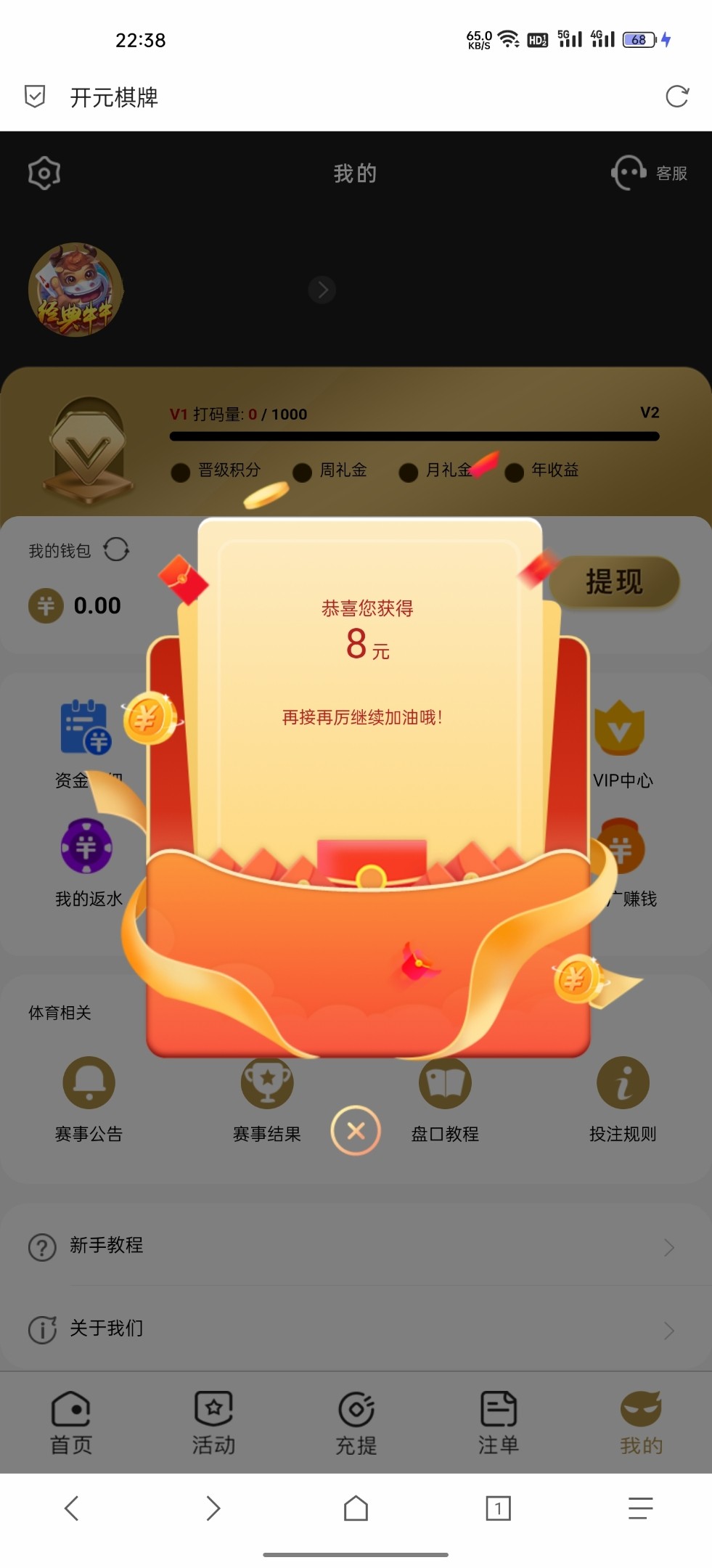 有短信的注册自动送八毛。