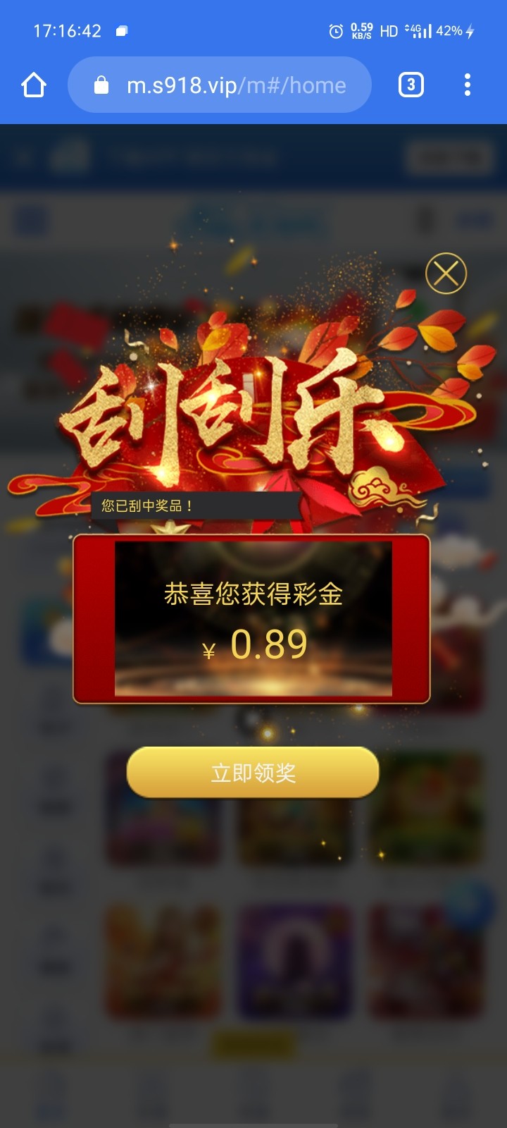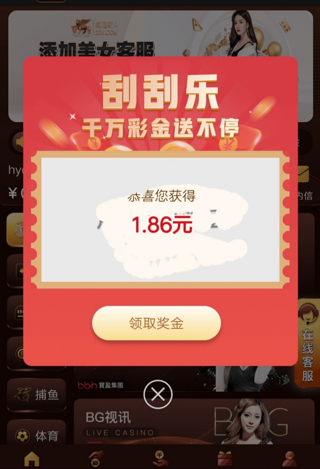 手机号注册刮奖,金额随机,最低好像7,刮奖以后绑卡彩金秒到……