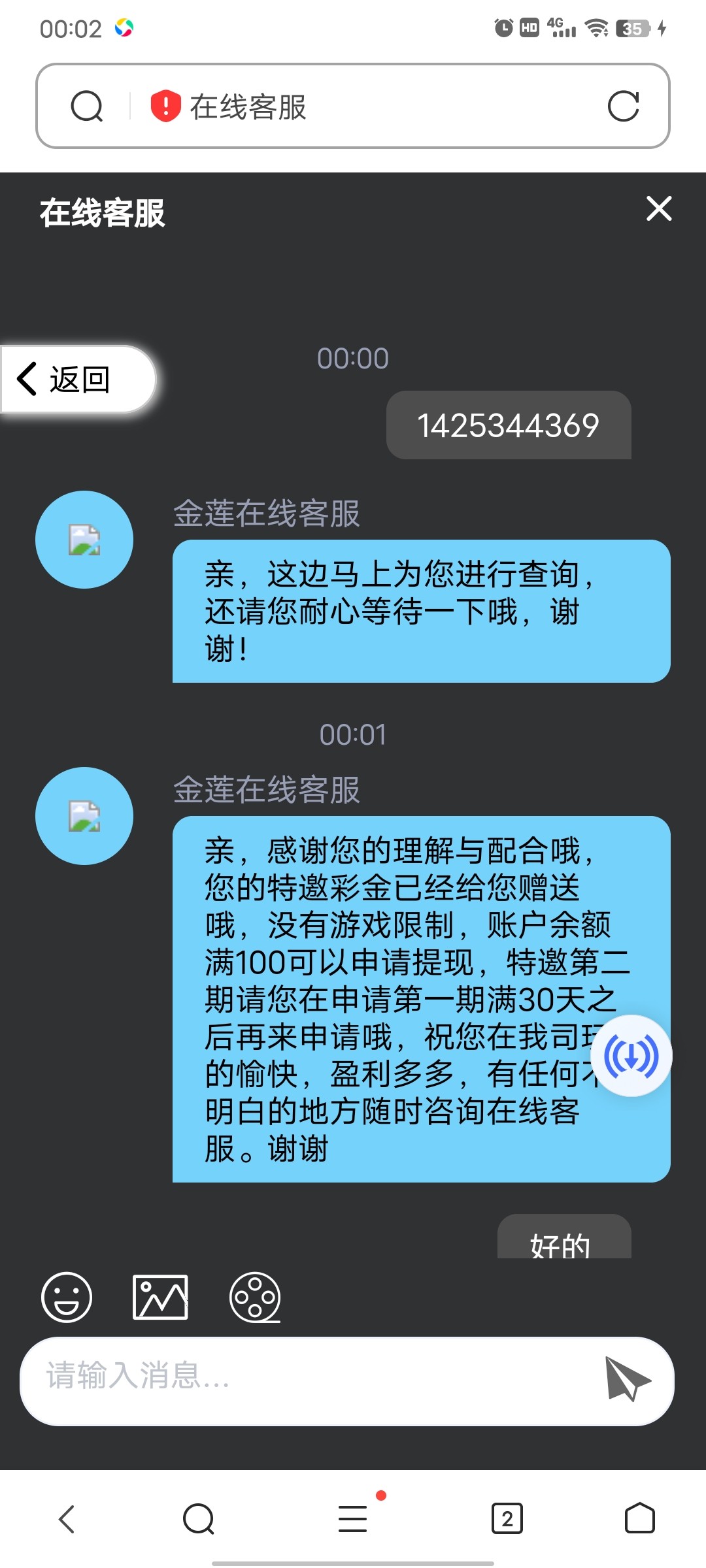 下载APP注册 联系客服申请短信特邀彩金 下方短信图