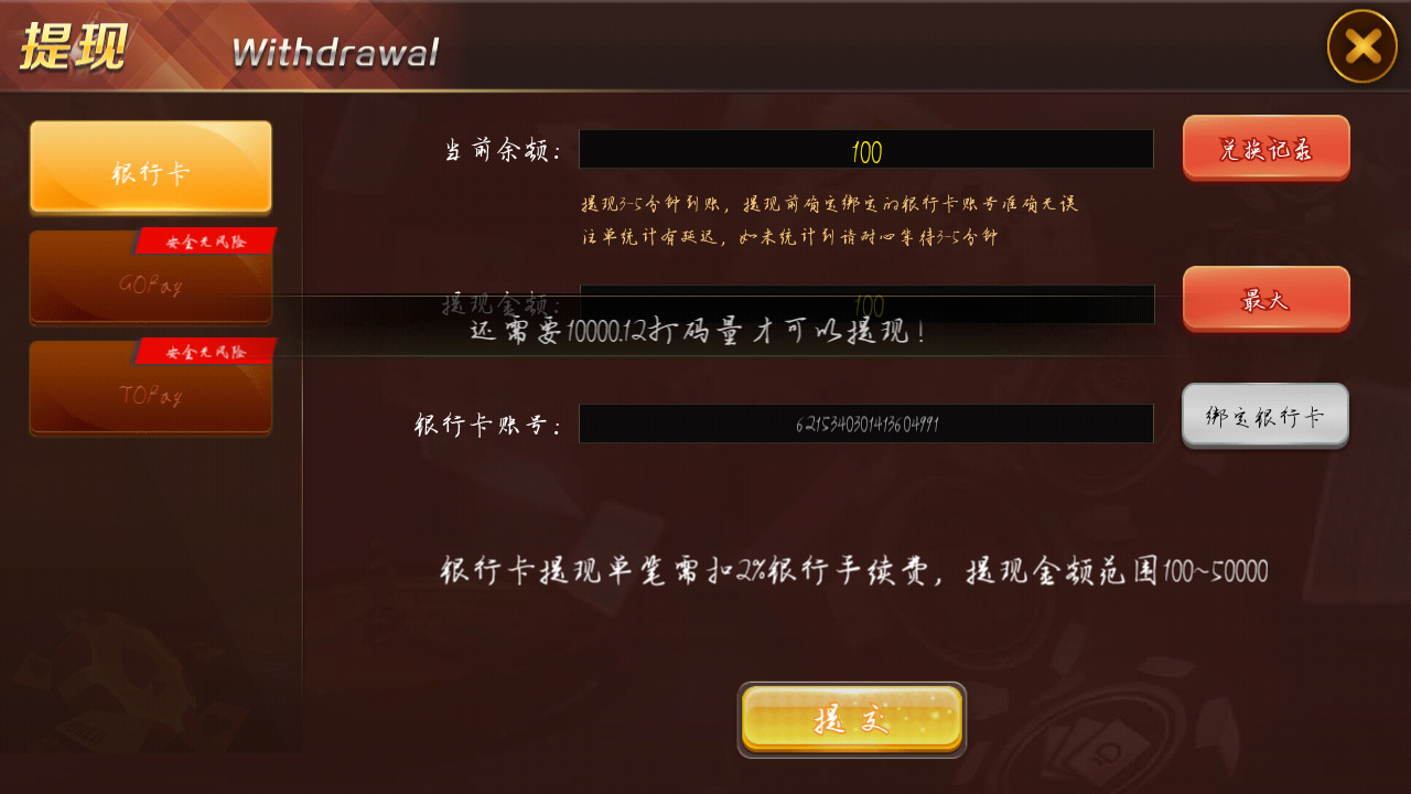 提款100已经到位